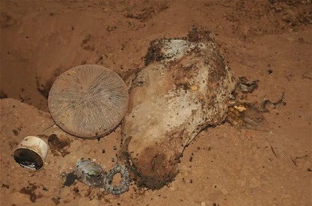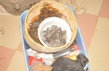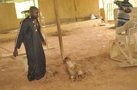 The men of NSCDC quickly swung into action, went straight to the church and he was asked to dig some spots inside the Church where various items suspected to be charms such as cow head, pigeon head tied with Kolanut, big clay pot wrapped with white clothes and other numerous fetish items were exhumed from the ground both at the entrance and inside the church.