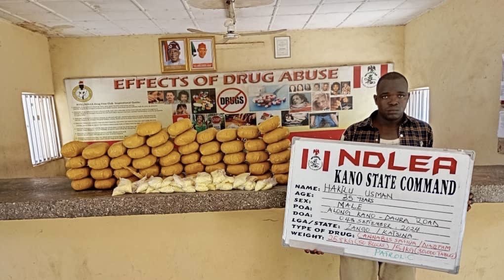 "While NDLEA operatives in Borno state arrested Idris Muhammad, 40, at Ramat area of Maiduguri on Thursday 5th September with 13,100 pills of tramadol, their counterparts in Kano on Wednesday 4th September nabbed Hakilu Usman, 35, with 25.8kg cannabis and 3,000 pills of diazepam along Kano–Daura road.