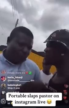 Controversial Nigerian artist, Portable was seen in a viral video slapping an alleged pastor who came to his bar to preach.
