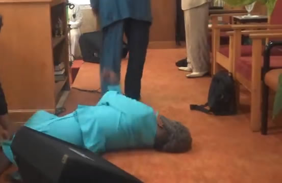 The 55-year-old woman had allegedly gone to the front of the church, singing songs of gratitude as she prepared to give her testimony when she suddenly collapsed.