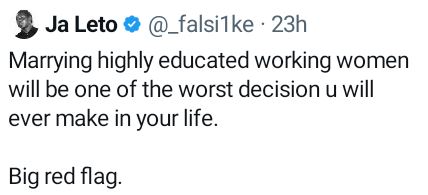 Akerele, who has been married for eight years, gave a befitting reply to the ‘life coach’ after he said that marrying a highly educated woman is one of the worst decisions a man would ever make.