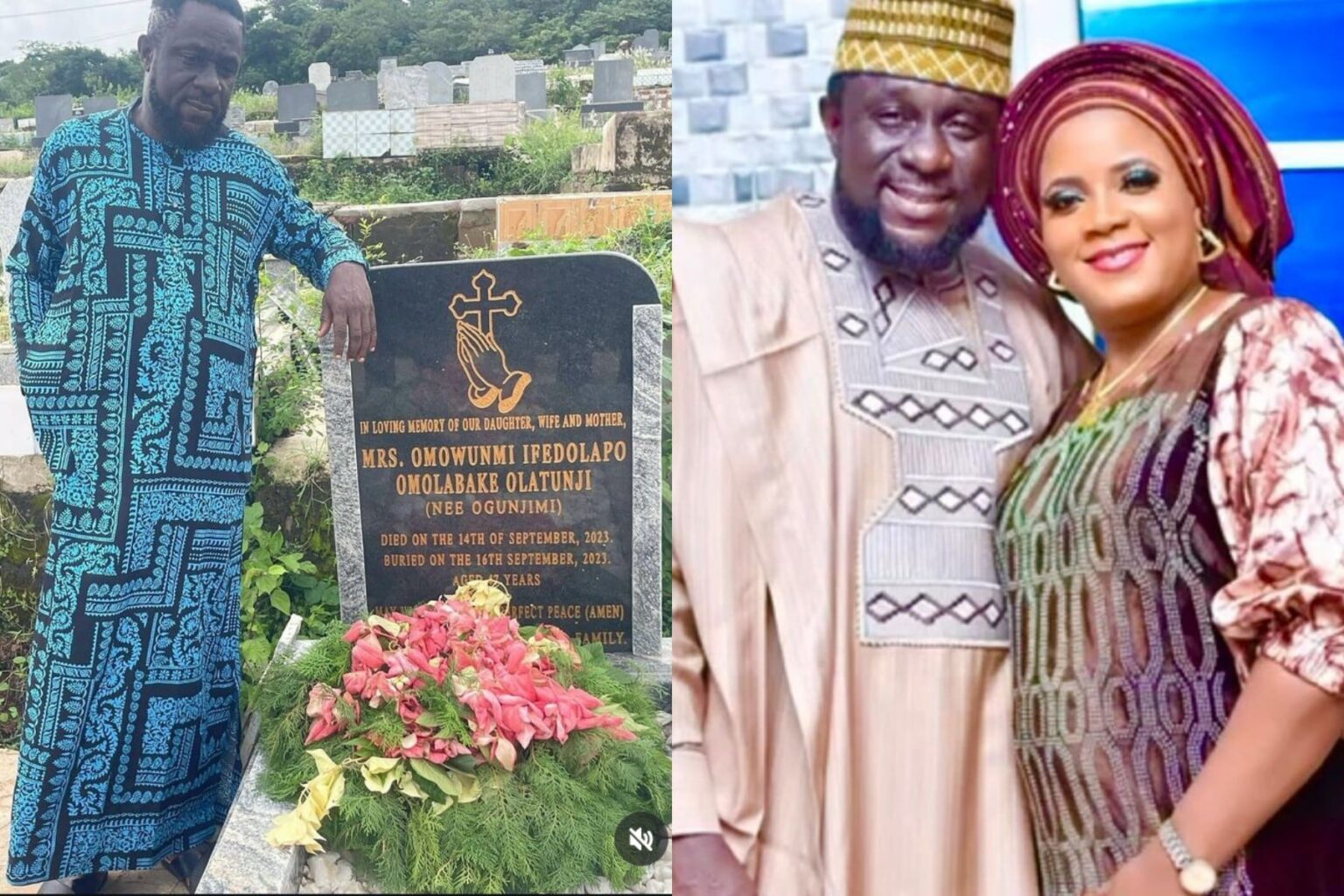 Actor Lekan Olatunji Pens Emotional Tribute to Late Wife on Her First Remembrance as He Visits Her Graveside
