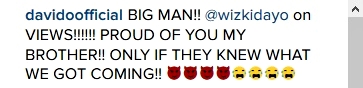 Music star, Davido has once again shown how much love he has for Wizkid after he congratulated him on Instagram over recent feats.
