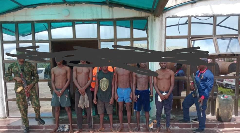 In Bayelsa State, along the Nun River in Southern Ijaw LGA, troops intercepted 7 suspects in 2 fibre boats with sacks of stolen products estimated to be over 1,000 litres.