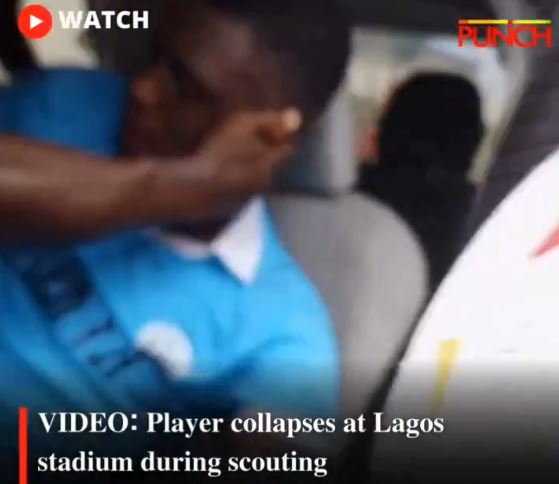 On Sunday, a young player, who is yet to be identified, suddenly collapsed at Maracana Stadium in Ajegunle, Lagos State, after a match held as part of a scouting programme hosted by the Shazam Football Team.
