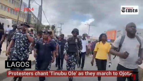 A video of protesters chanting against President Bola Tinubu as they marched the streets of Lagos has gone viral.