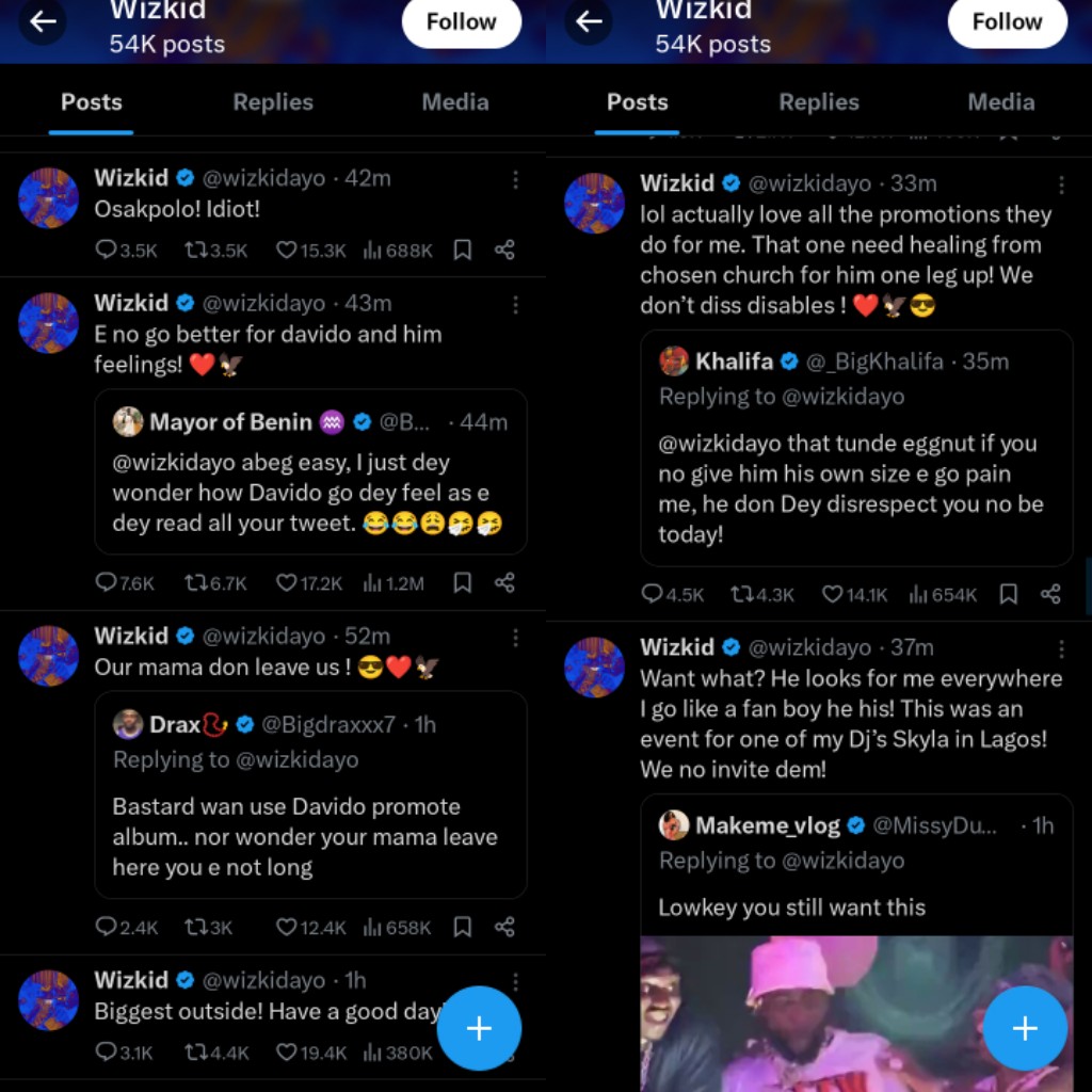 Music star Wizkid has continued his attack on singer, Davido.