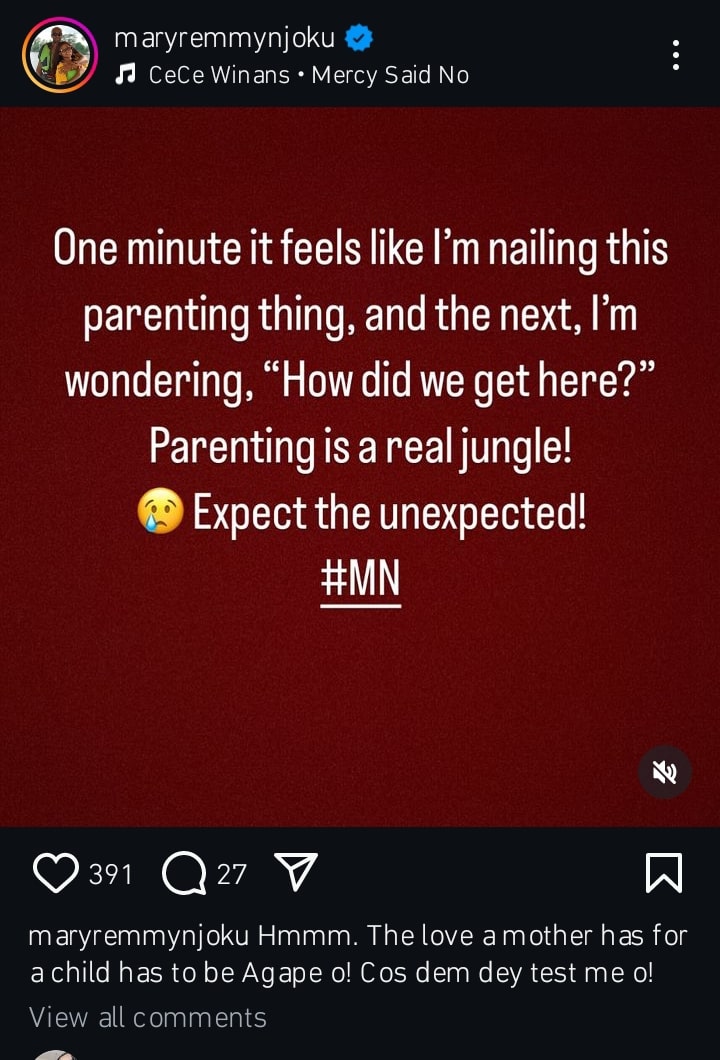 Nollywood actress and filmmaker Mary Njoku has lamented over the challenges of parenting she is currently facing.