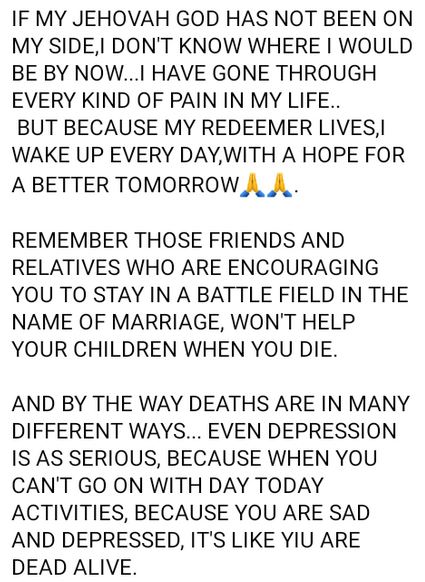 BUT BECAUSE MY REDEEMER LIVES,I WAKE UP EVERY DAY, WITH A HOPE FOR A BETTER TOMORROWShe was desperate to settle down at 29 - Mother of Kenyan woman beaten to d@ath by boyfriend writes as she addresses people in abusive relationshipsShe was desperate to settle down at 29 - Mother of Kenyan woman beaten to d@ath by boyfriend writes as she addresses people in abusive relationships.