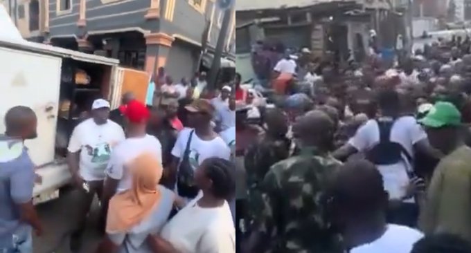 A video going viral online has captured the moment thousands of Nigerians scrambled for loaves of bread distributed by leaders of the ruling All Progressives Congress (APC) in Lagos State.