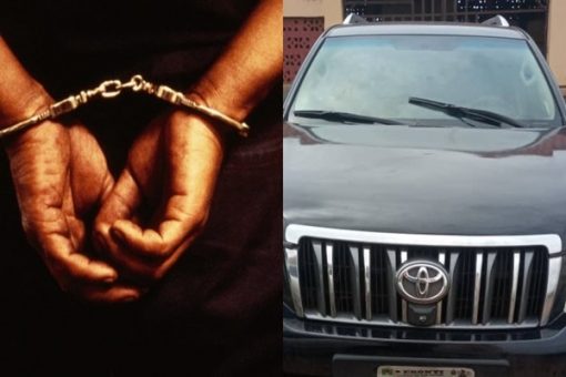One Okoro Daniel Obumneme, who allegedly stole a black Prado jeep belonging to a top politician in Ebonyi state, has been arrested by the Police in Ebonyi State.