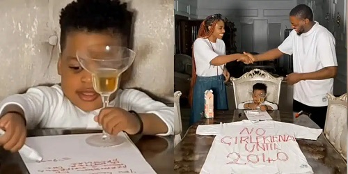 Nigerian media influencer, Jane Mena, and her husband, Andre Plies have reached an agreement with their son not to have a girlfriend till 2040.