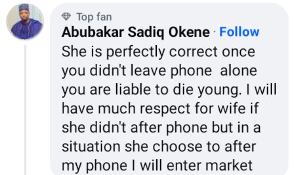 A Nigerian man, Abubakar Sadiq Okene has stated that a woman is liable to die young if she keeps going through her husband's cell phone.