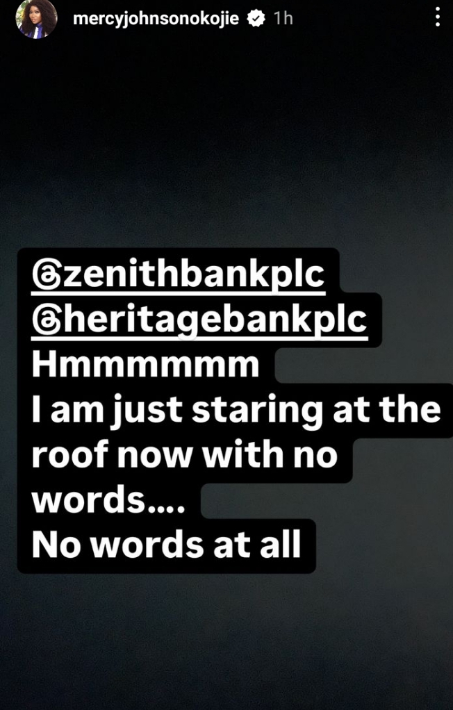 Nollywood actress, Mercy Johnson has called out Zenith Bank and Heritage Bank over service disruptions.