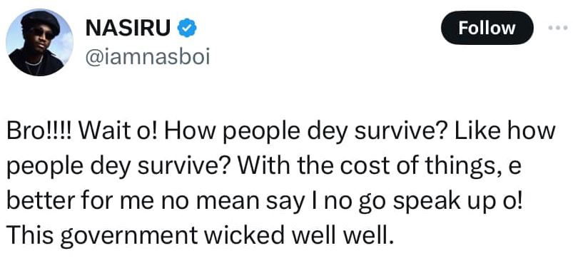 Nasboi, the popular Nigerian singer, skit maker, and comedian, has publicly called out the administration of President Bola Tinubu.