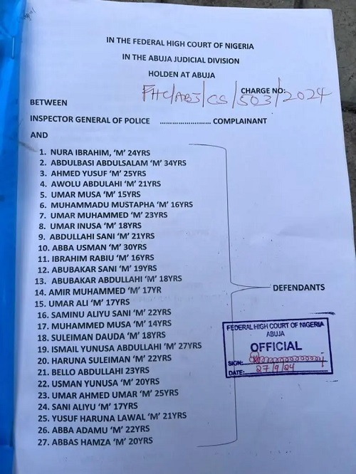 “The 66 protesters, mainly minors, are to be arraigned on the 1st of November, 2024 before Hon. Justice Egwuatu, Court 10, 4th floor, Federal High Court, Abuja Division.”