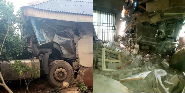 A Dangote Cement truck with registration number DGW109XA, which was fully loaded, has rammed into a house in Imasayi Yewa North local government area of Ogun state.