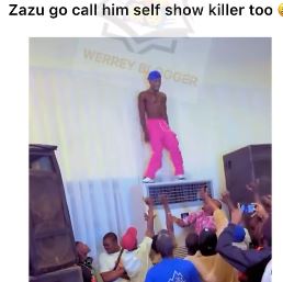 Taking his performance to the next level, he climbed onto a standing air conditioner, assisted by enthusiastic crowd members.