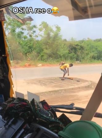 In a viral TikTok video, a driver noticed the man eating the sacrificial offering left by the roadside and began recording the unusual scene.