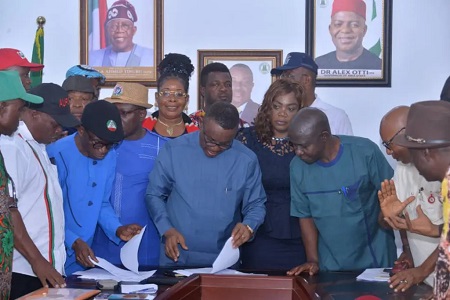 Responding, the leader of the Organized Labour team and state Chairman of the NLC, Ogbonnaya Okoro said the signing of the agreement marked a landmark in the implementation of the new minimum wage.