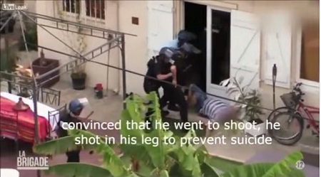 This is the moment a well-timed shot of French police prevented the suicidal man from taking his life.
