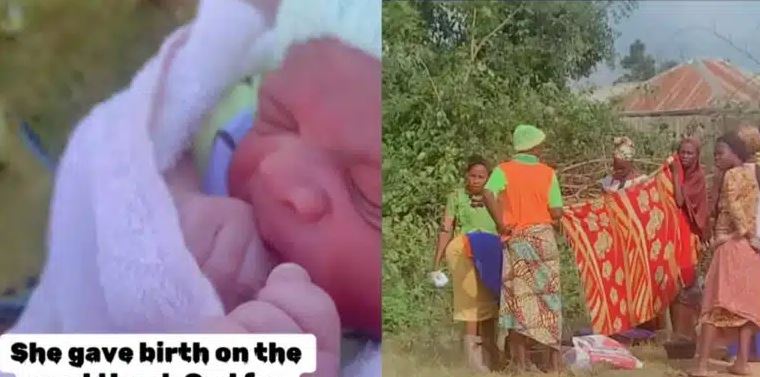 The video is captioned, “She gave birth on the road, thank God for safe delivery.”