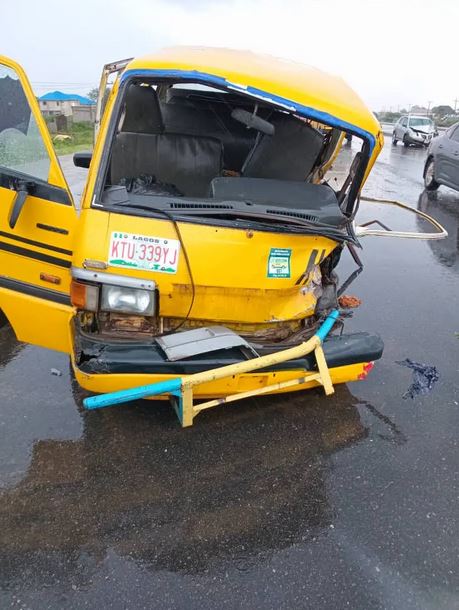 “The Mazda commercial bus, with registration number ABJ 95 YJ and a Toyota car, with registration number KTU 339 YJ, coming from Badagry, were involved in a head-on collision.
