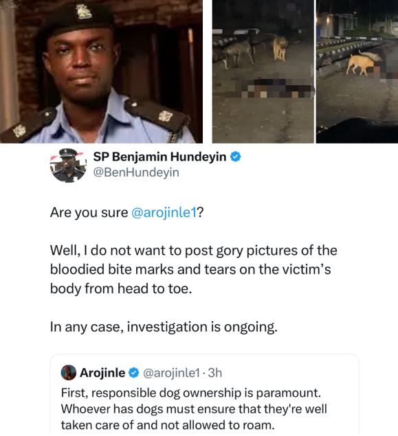 SP Benjamin Hundeyin, the spokesperson for the Lagos State Police Command, has confirmed that bite marks were found on the body of the security guard who was allegedly mauled to death by dogs in a Lagos estate.