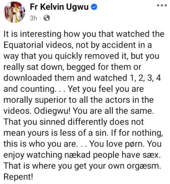 Fr. Kelvin Ugwu, the Nigerian Catholic priest, has stated that those who begged for s3x tapes involving Baltasar Ebang Engonga, a high-ranking Equatorial Guinean civil servant, should go for confession.