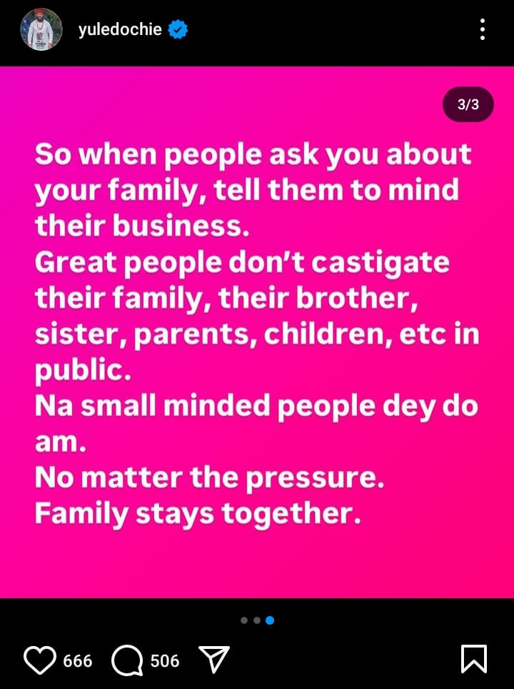 Don’t let haters push you into castigating your family. That’s a sign of weakness and jealousy. Family matter Na inside house them they treat am.