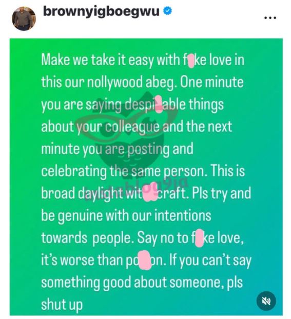 Veteran Nollywood actor, Browny Igboegwu has taken to social media to lament.