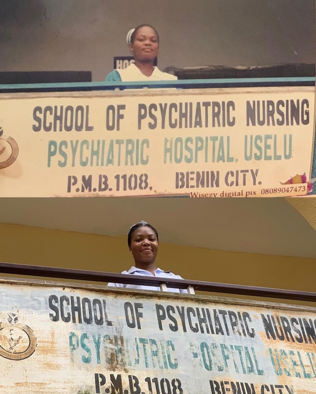 The nurse posed for a photo at the School of Psychiatry Nursing, Psychiatric Hospital Uselu, Beninin City, Edo State.