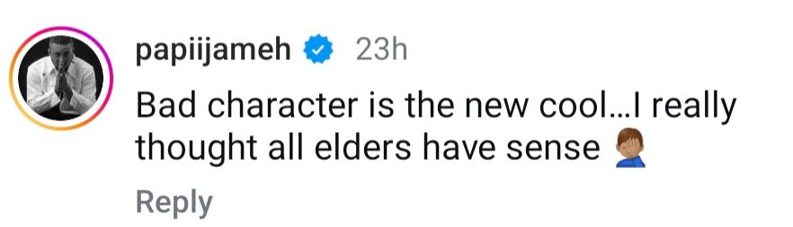 Responding to the video, Joseph wrote: "Bad character is the new cool... I really thought all elders have sense.