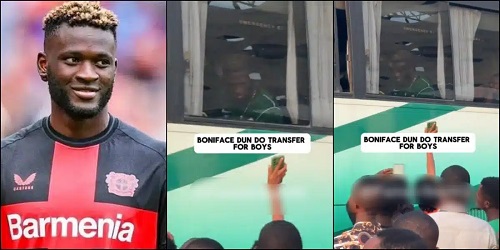 Nigerian striker, Victor Boniface has stunned Nigerians after a video of him making transfer to a fan surfaced online.