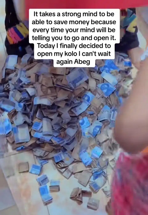 A Nigerian lady has shocked social media users after breaking her piggy bank.