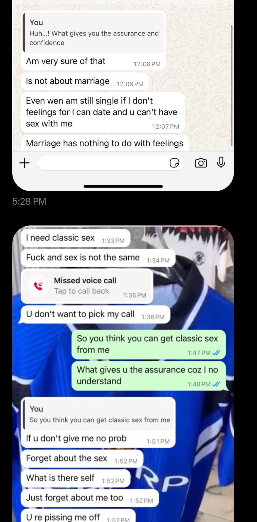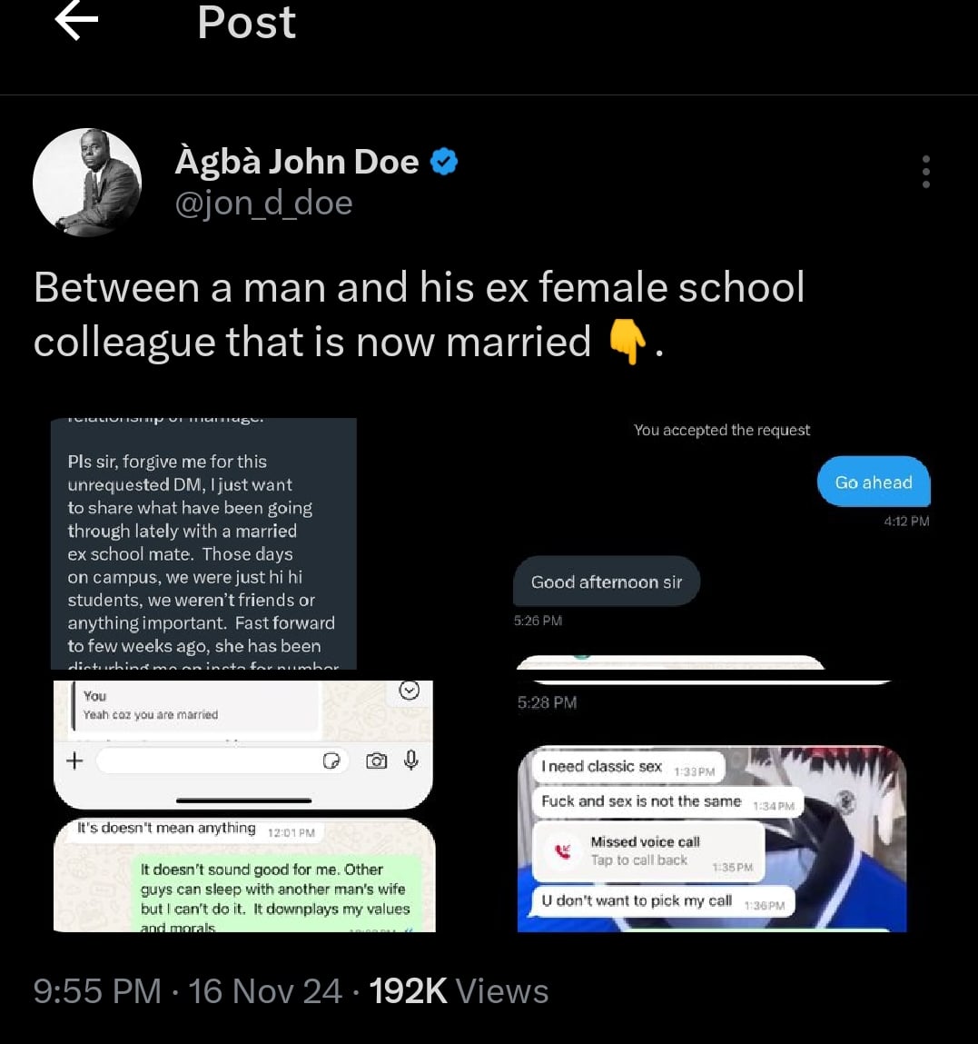 A Nigerian man has shared a chat he had with a married mother of two disturbing him for s3x.