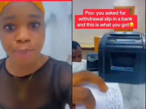 A lady has taken to Tiktok to reveal the note she allegedly received from a bank staff after asking him for a withdrawal slip.