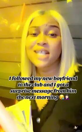 A lady known as chef__gloria on Instagram has taken to the platform to share the message she received from her man after a night out.
