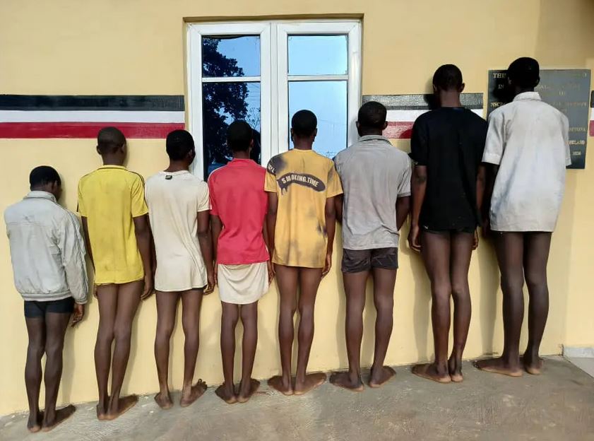 The suspects are Matthew Omotayo, age 17 Mojeeb Solomon, 16 years; Olamilekan Adefuye, 18 years; Damilola Ismail, 19 years; Emmanuel George, 17 years; Aborisade Ayomide, 17 years; Paul Chukwuchebe, 19 years and 16 -years old Lateef Adeoye.