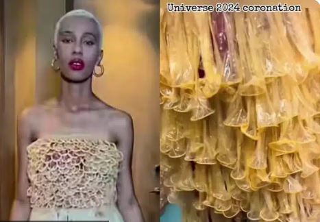 Sharing the video on Tiktok, a Tiktok user wrote: “MU Dr. Congo CEO in a condom dress at the Miss Universe 2024 coronation.”
