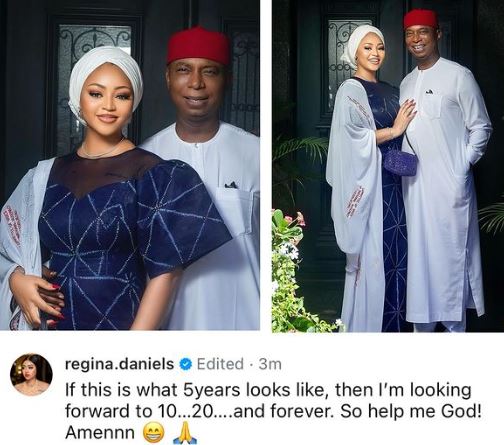 She went online to gush about their union hours after her co-wife, Regina Daniels did same.