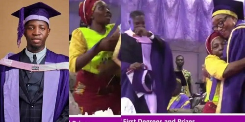 A video has gone viral showing the moment the mother of UNIBEN best-graduating student rushed on stage in her Chosen apron to celebrate with her son.