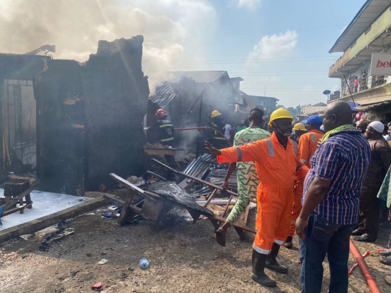 “Upon arrival of the Eagle response team at the incident scene by 0937hrs, it was observed that some shops at the Alayabiagba market were engulfed by fire.