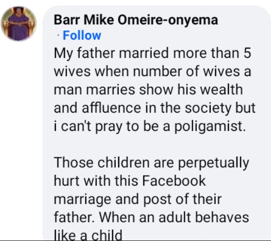 Mike Omeire-Onyema, a married Nigerian lawyer, has reflected on the subject of polygamy.