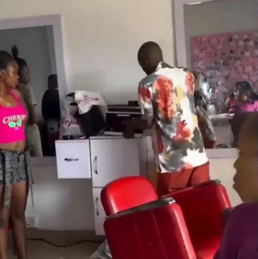 The video shows the ex-girlfriend confronting him, visibly upset, while other women in the salon expressed disbelief at his actions. Voices in the background can be heard calling him “shameless,” questioning why he waited so long to reclaim the items.