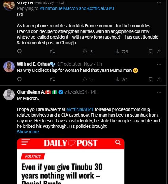 Nigerians React as President of France Tweets in Pidgin