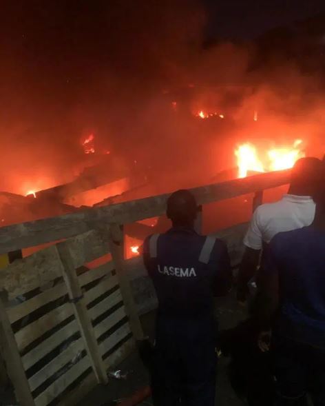 Men of the Federal and Lagos State Fire and Rescue Service, Lagos State Emergency Management Agency, LASEMA, and Nigeria Police, among others, were at the scene to put the fire under control.