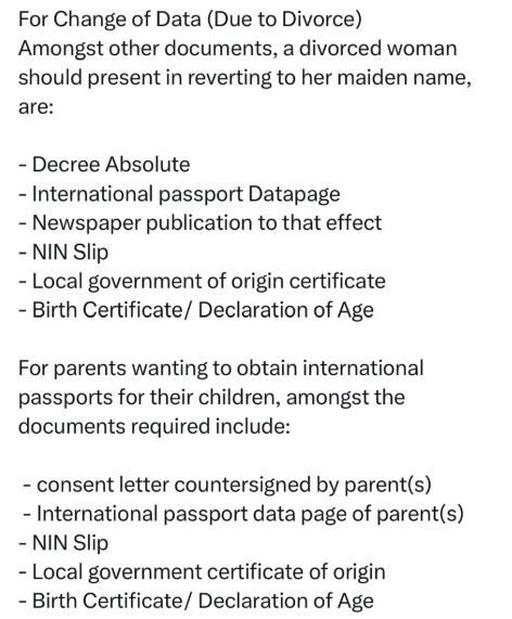 In her post, the lady who is in the process of getting a divorce stated that she began renewing her passport last week but is yet to complete it due to the many requirements needed from women.
