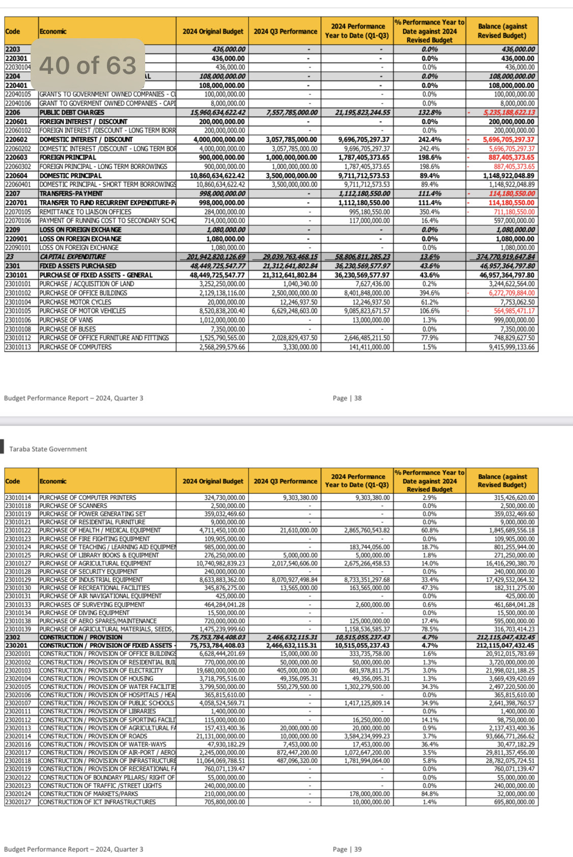 Infact, construction/provision of health centres and hospitals took zero naira in the nine month period between January and September, 2024.