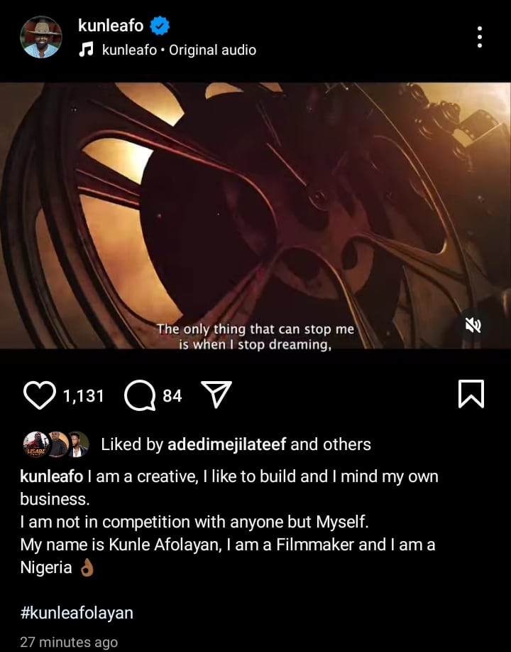 Kunle Afolayan took the time to share a compiled video detailing his national and international recognition on his Instagram page.